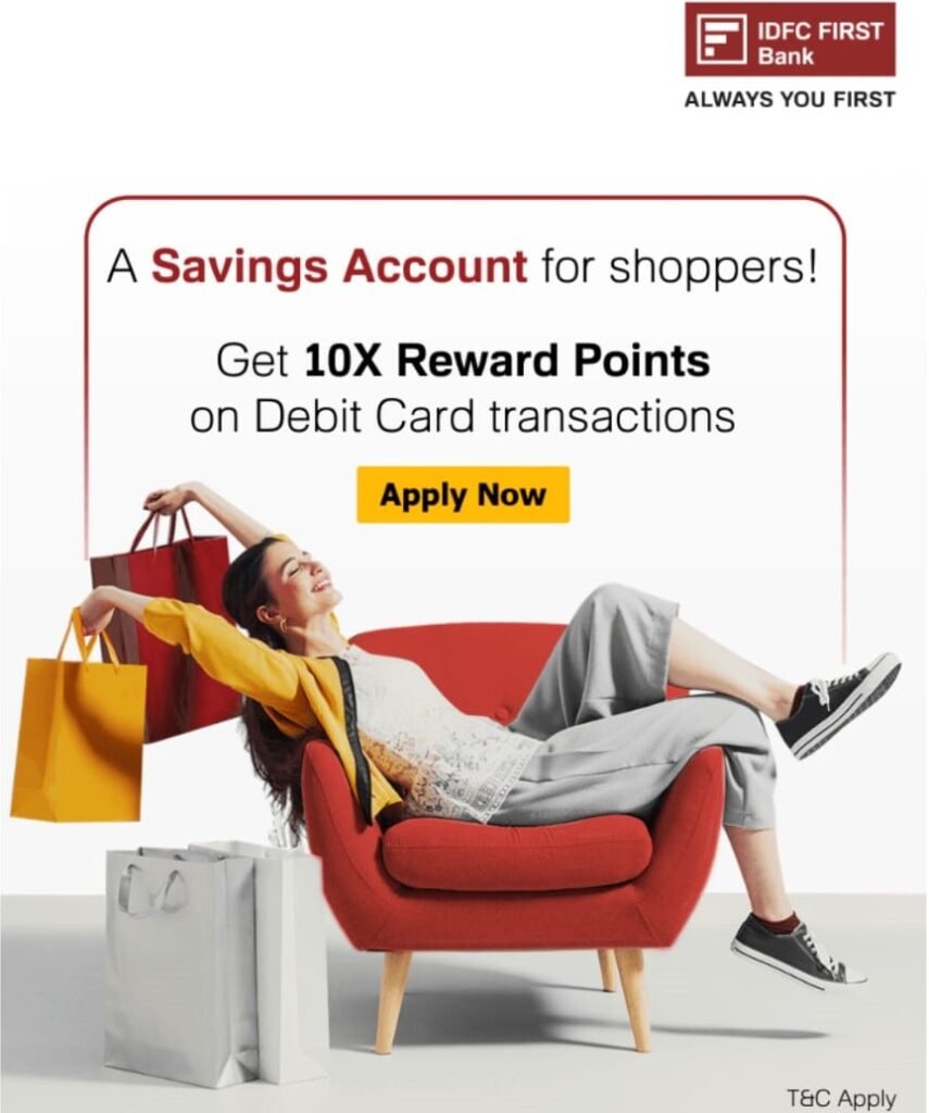 Compare the Best Credit Cards in India 2025 Save on shopping, travel, and more. Apply in 2 minutes! Credit Card Saving A/C Investment Loan Demat A/c Credit Line Best Credit Crads 2025 Tata Neu HDFC Bank Credit Card KNOW MORE APPLY NOW SBI SimplySAVE Credit Card KNOW MORE APPLY NOW IndusInd Bank Tiger Credit Card KNOW MORE APPLY NOW ICICI Bank Credit Cards KNOW MORE APPLY NOW Axis PRIVILEGE Credit Card KNOW MORE APPLY NOW SBI SimplyCLICK Credit Card KNOW MORE APPLY NOW View All Credit Card Open zero balance Kotak 811 savings account KNOW MORE APPLY NOW Airtel Payments Bank KNOW MORE APPLY NOW Indus Delits Savings Account KNOW MORE APPLY NOW Tide Business Account KNOW MORE APPLY NOW IDFC FIRST Bank KNOW MORE APPLY NOW Equitas Selfe Saving Account KNOW MORE APPLY NOW View All Accounts